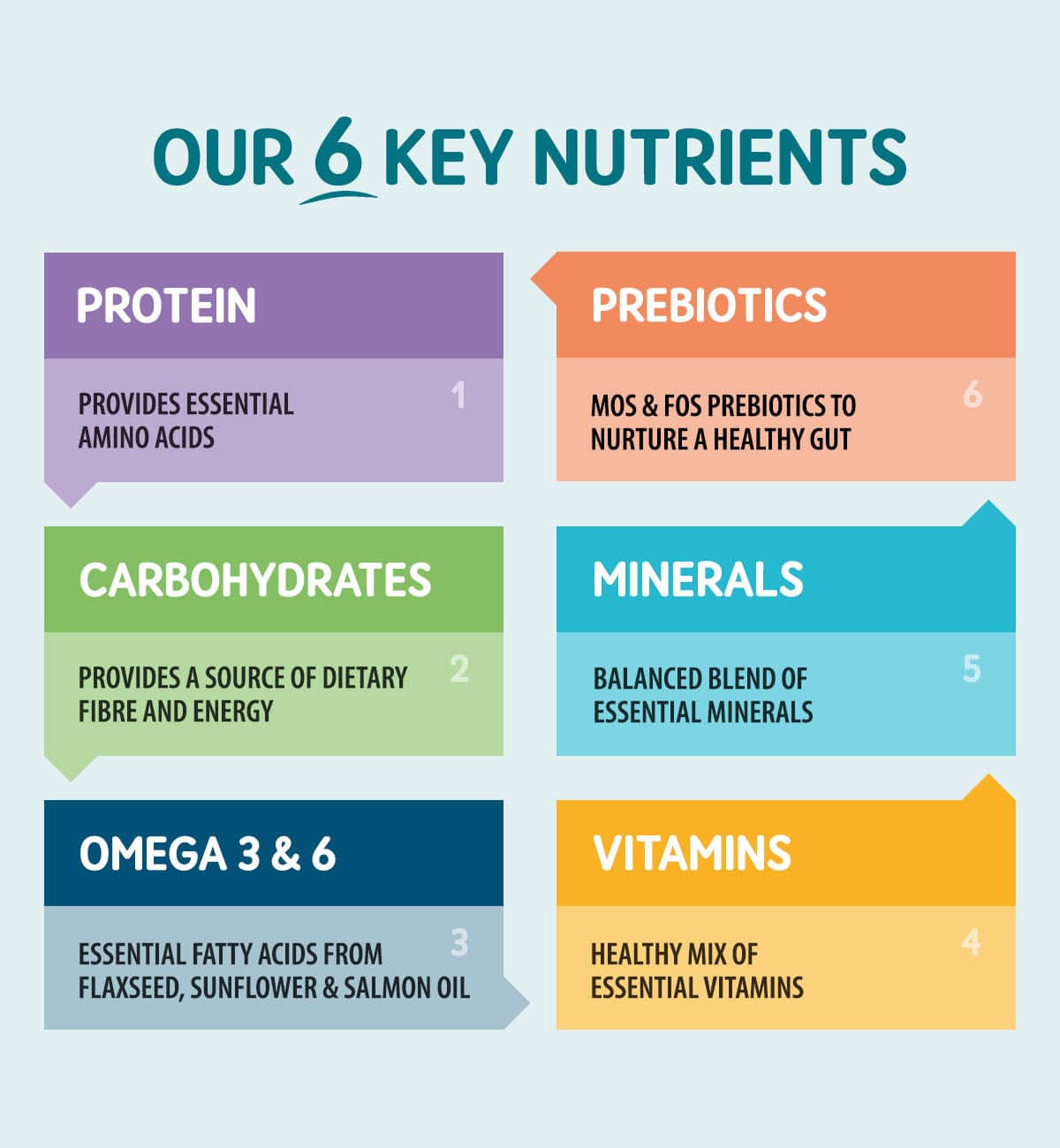• Peppers, Peas & Sweet Potato: Natural sources of fibre, vitamins, and slow-release carbohydrates for steady growth.