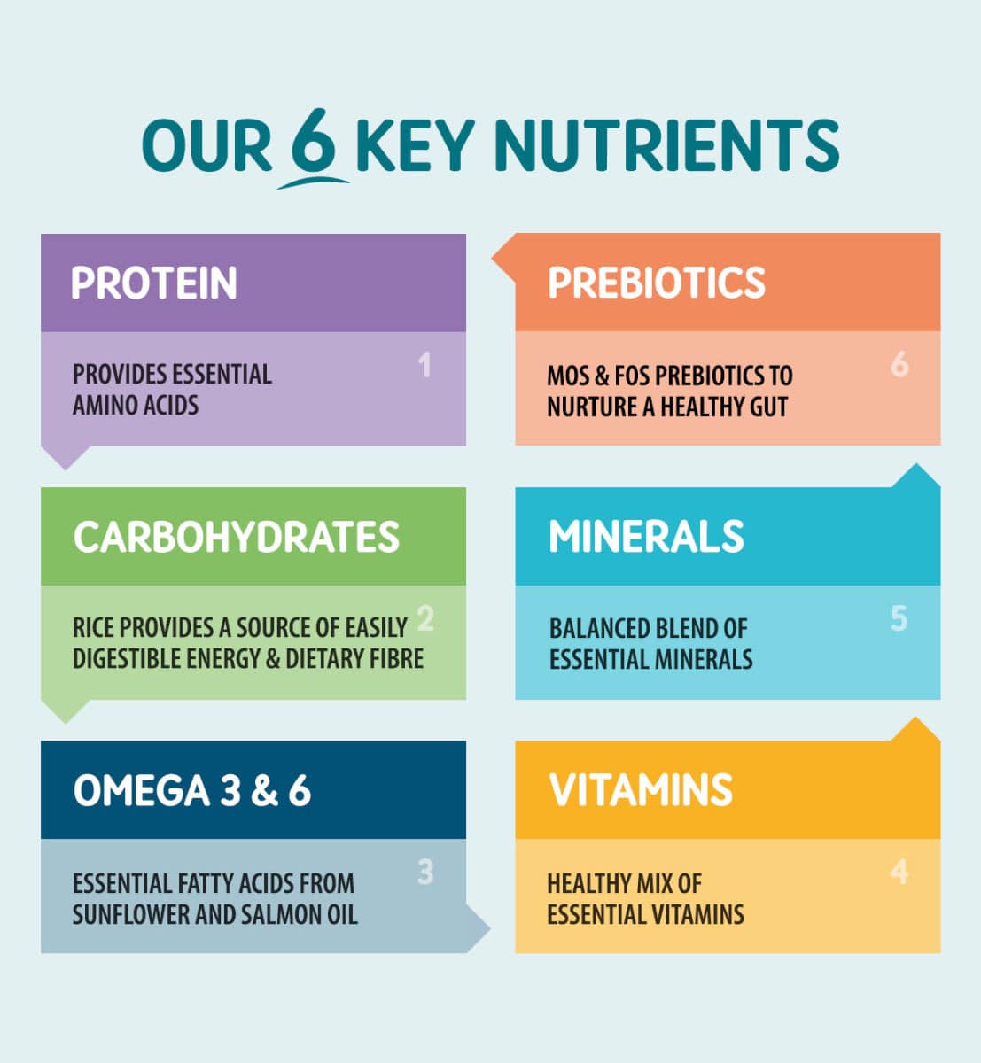 12.5% Brown Rice & 10% Vegetables: Natural sources of fibre, vitamins, and slow-release carbohydrates for steady growth and energy.